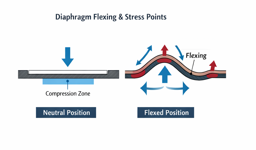 Material hardness affects how well a diaphragm seals and recovers after compression. A balance between flexibility and strength is required to maintain sealing pressure over time. Engineers must select appropriate hardness levels to avoid excessive wear or loss of elasticity during prolonged use.